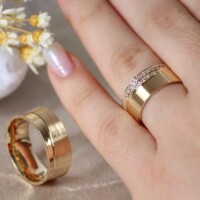تهيه حلقه ازدواج يكى از ضروريات مراسم ازدواج است كه خريدوتهيه آن هرچندبه ظاهرساده بنظرميرسد ولى وسواس و دقت در انتخاب و خريد آن اين مسئله را مشكل تر ميسازد.توصيه ميشوديك حلقه ساده رابعنوان حلقه ازدواجتان تهيه كنيد وسعى نكنيد بدنبال انگشترهاى بزرگ و پرنگين باشيد تا بتوانيد در روزمرگى وهميشه از آن استفاده كنيد ونگران گرفتگى چنگ نگين هابر اشيا ولباستان نباشيد،و يا لااقل تك نگين و يا يك يا دو رديف نگين استفاده شده باشد.قرار است شما يك عمر اين حلقه را استفاده كنيد بهتراست يك سايز بزرگتر تهيه كنيد تا با كمى چاقى غيرقابل استفاده نگردد.